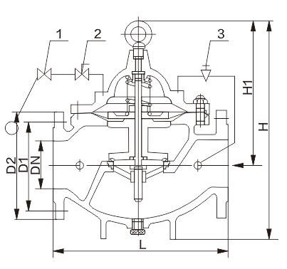 100X遙控浮球閥主要外形連接尺寸