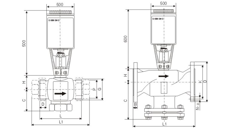 三、VB-7000電動二通閥主要連接尺寸