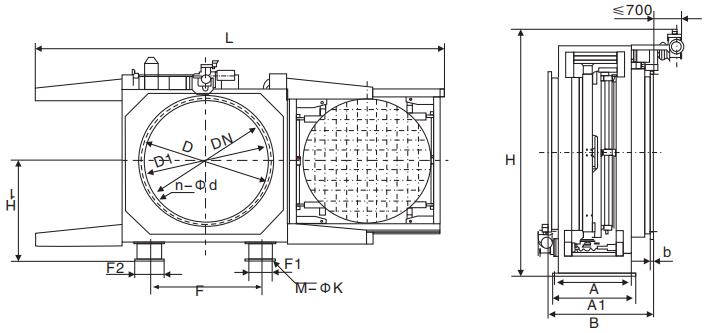 DN D D1 B b n-d H H1 L A A1 F F1 F2 M-K 電動功率(kw) 質量(kg)
