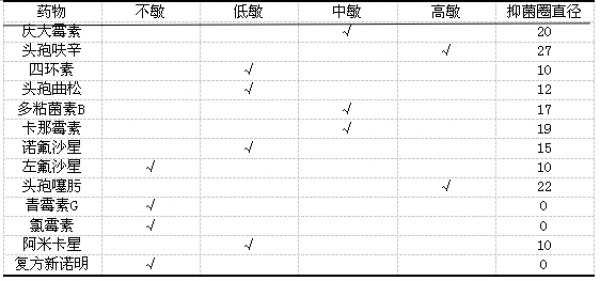 藥物 不敏 低敏 中敏 高敏 抑菌圈直徑