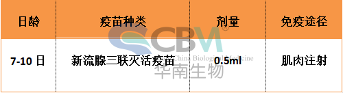 對于腺病毒的防控目前主要是應用滅活疫苗進行防控,這主要是由腺病毒自身良好的免疫原性決定的。建議免疫程序如下: